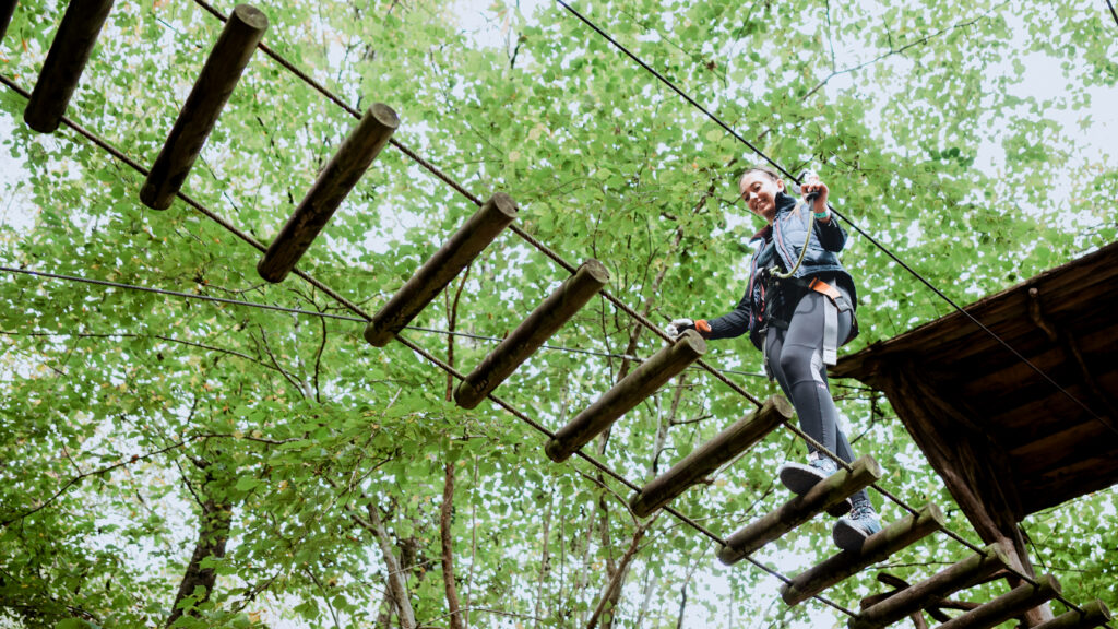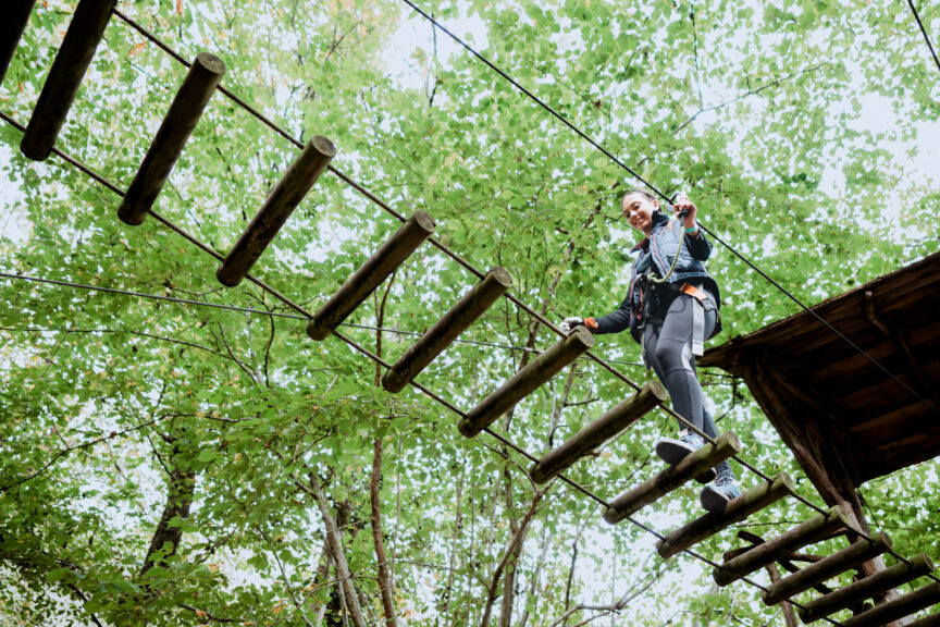 - 16 parcours en hauteur originaux entre arbres et rochers
