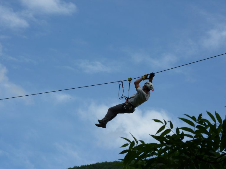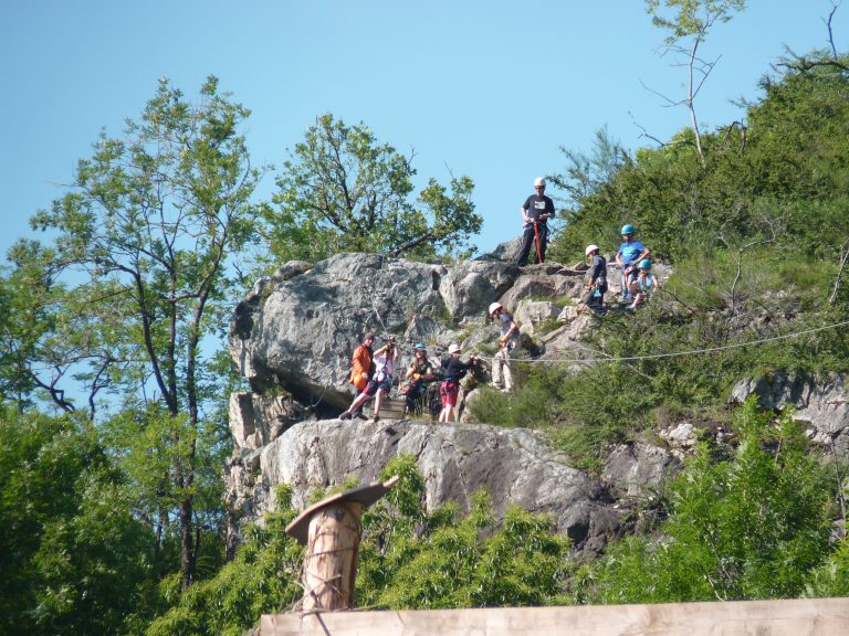 C’est l’incontournable du parc ! Depuis 2005, elle a toujours autant de succès…Perchée à 60m de haut sur la falaise, la Tyrolienne géante traverse le parc, sur une longueur de 250 m et à grande vitesse. Ultra sensations ! Elle est réservée aux adultes et aux ados à partir de 12 ans.